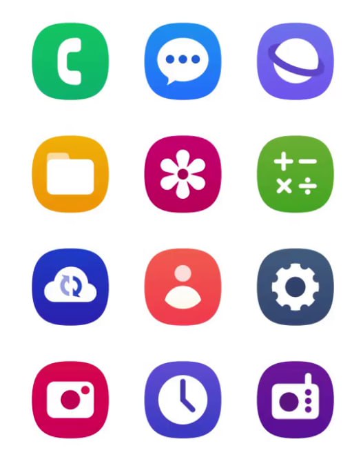 Many icons feature appearance refinements such as Samsung Phone, Messages, and My Files. Whereas, brand new UI components deployed on a handful of app icons such as: